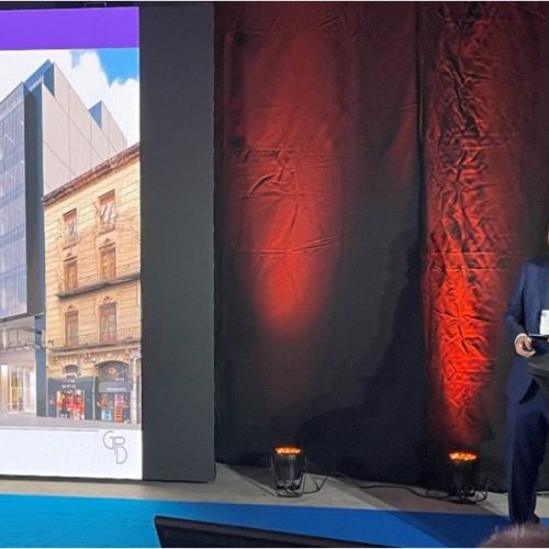 Por otro lado, Miguel Núñez ha expuesto la actuación de vidrio estructural en el acceso de Castellana 85, diseñado por Ortiz León para Merlin Properties, en el que se ha llegado a un nivel de transparencia, iluminación natural del vestíbulo y relevancia en el diseño y construcción verdaderamente inusitado. La mínima expresión de los dos lienzos de vidrio con fijaciones ocultas en los extremos se optimizan cuando conectándolas simplemente por unas barras perpendiculares consiguen trabajar en conjunto contra el viento evitando la perfilería vista.