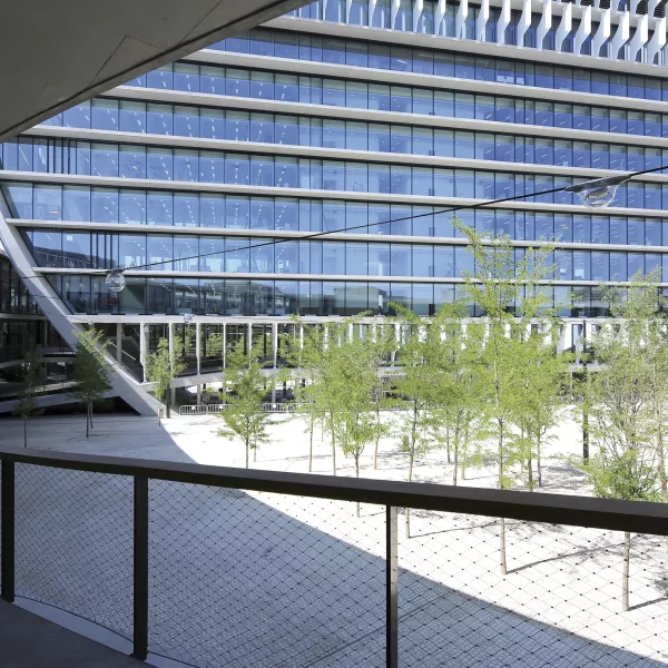 Conjunto de edificios realizados en dos fases: la primera consiste en la intervención sobre cuatro edificios existentes; la segunda consiste en la ejecución del resto de bloques de planta baja hasta construir el volumen completo y una torre con forma ovoidal de 90 m de altura, que se sitúa en el interior de los edificios bajos. Los edificios bajos son bloques exentos y conectados entre sí por pasarelas, creando patios intermedios rodeados de vegetación.