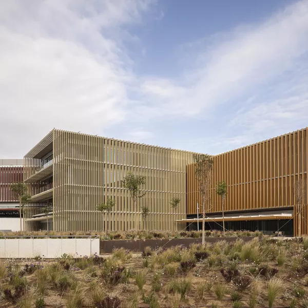 La nueva Sede Central de Cajamar (BCC), ubicada en Almería, es un complejo arquitectónico innovador que destaca por su diseño único. El edificio se compone de seis volúmenes independientes, cada uno orientado en distintas posiciones, que en conjunto crean una disposición en forma de peine.